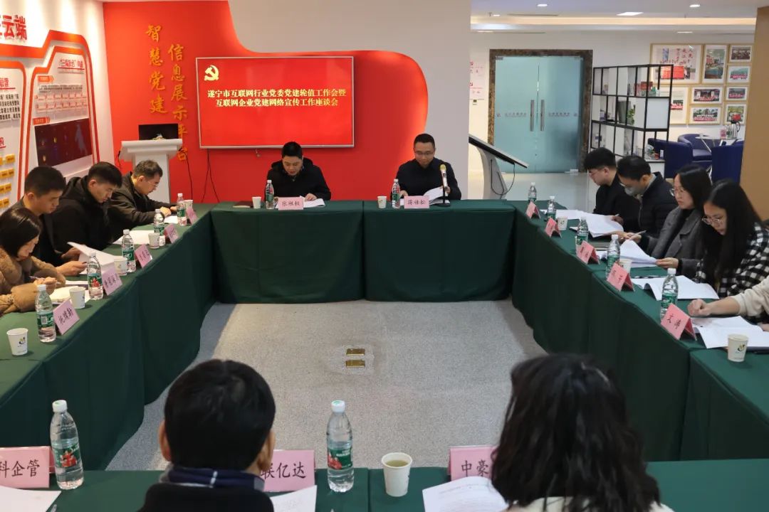 11月27日,遂宁市互联网行业党委党建轮值工作会在遂宁经开区召开。市委网信办等市互联网行业党委委员单位、市互联网重点企业党支部、遂宁经开区党群部等相关负责人参加活动。