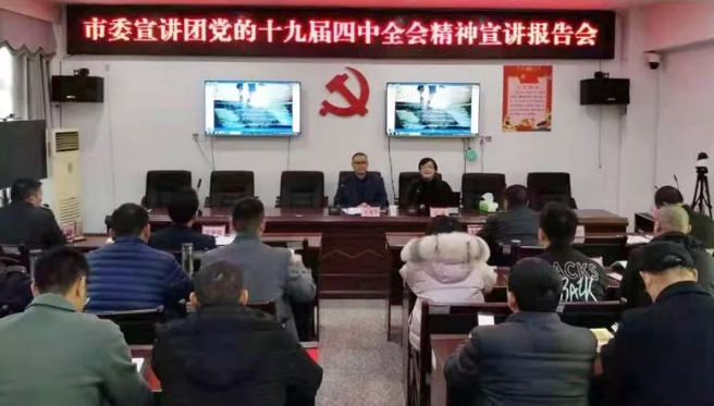 12月2日,学习贯彻党的十九届四中全会精神宣讲报告会在北固镇举行。市委讲师团团长、副教授姜北以《坚定制度自信 开辟"中国之治"新境界——深入学习贯彻党的十九届四中全会精神》为题作宣讲报告。