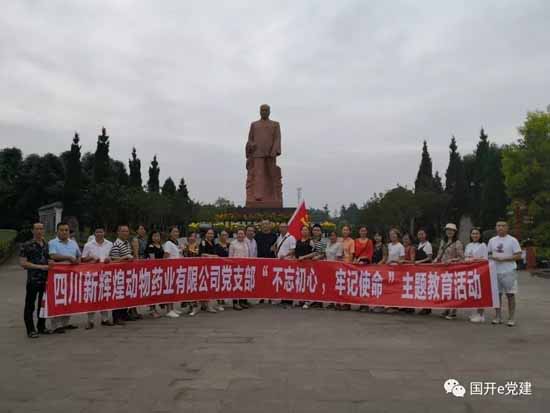 为庆祝中国共产党诞辰98周年,深入学习贯彻党的十九大精神和习近平总书记在"不忘初心、牢记使命”主题教育重要讲话。2019年6月30日,四川新辉煌动物药业公司党委书记黄自强同志带领公司全体党员和入党积极分子来到了乐至县劳动镇陈毅元帅故里开展爱国主义教育活动。