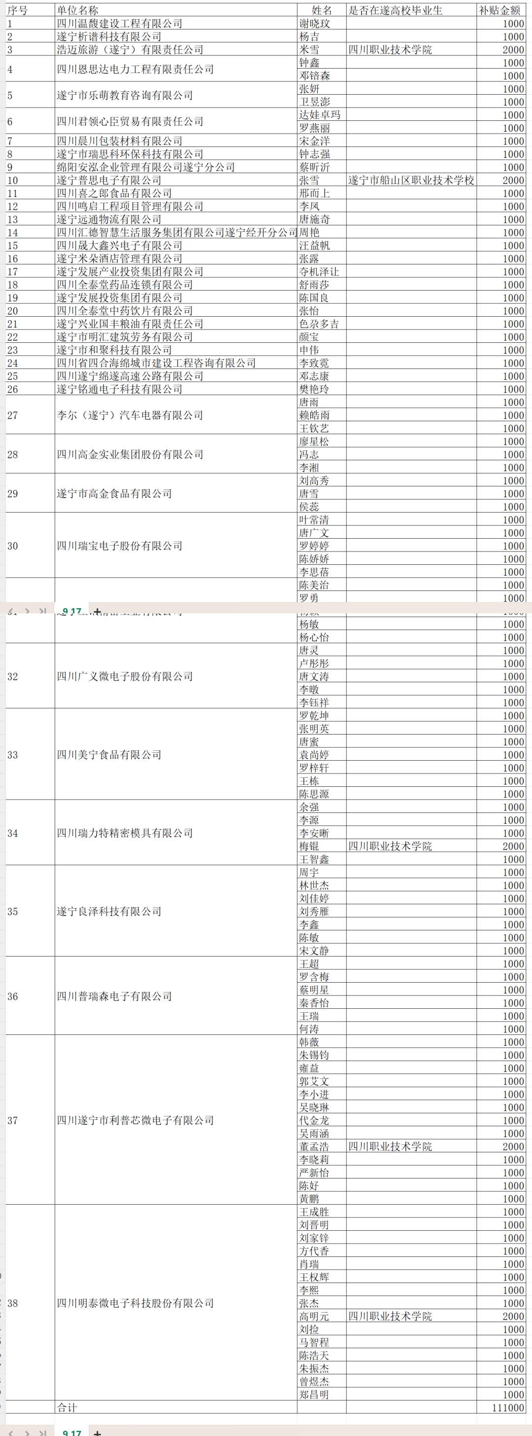 根据《关于持续巩固和增强经济回升向好态势若干政策措施》(川办规〔2024〕2号)精神,我局拟发放2025年第四批企业招用新成长劳动力补贴,现将相关情况进行公示(详情见附件),公示时间为2025年9月18日-9月24日。