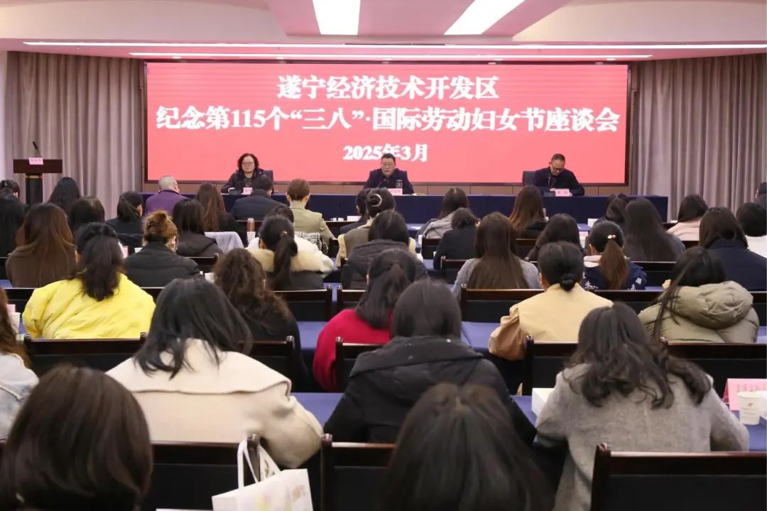 3月4日,遂宁经开区召开纪念第115个“三八”·国际劳动妇女节座谈会,旨在激励全区广大妇女积极向上、自强不息,为园区发展贡献巾帼力量。遂宁经开区党工委副书记、管委会常务副主任谢君环出席会议并讲话,区党工委副书记、总工会主席韩阳主持会议,园区领导任常菊参加会议。