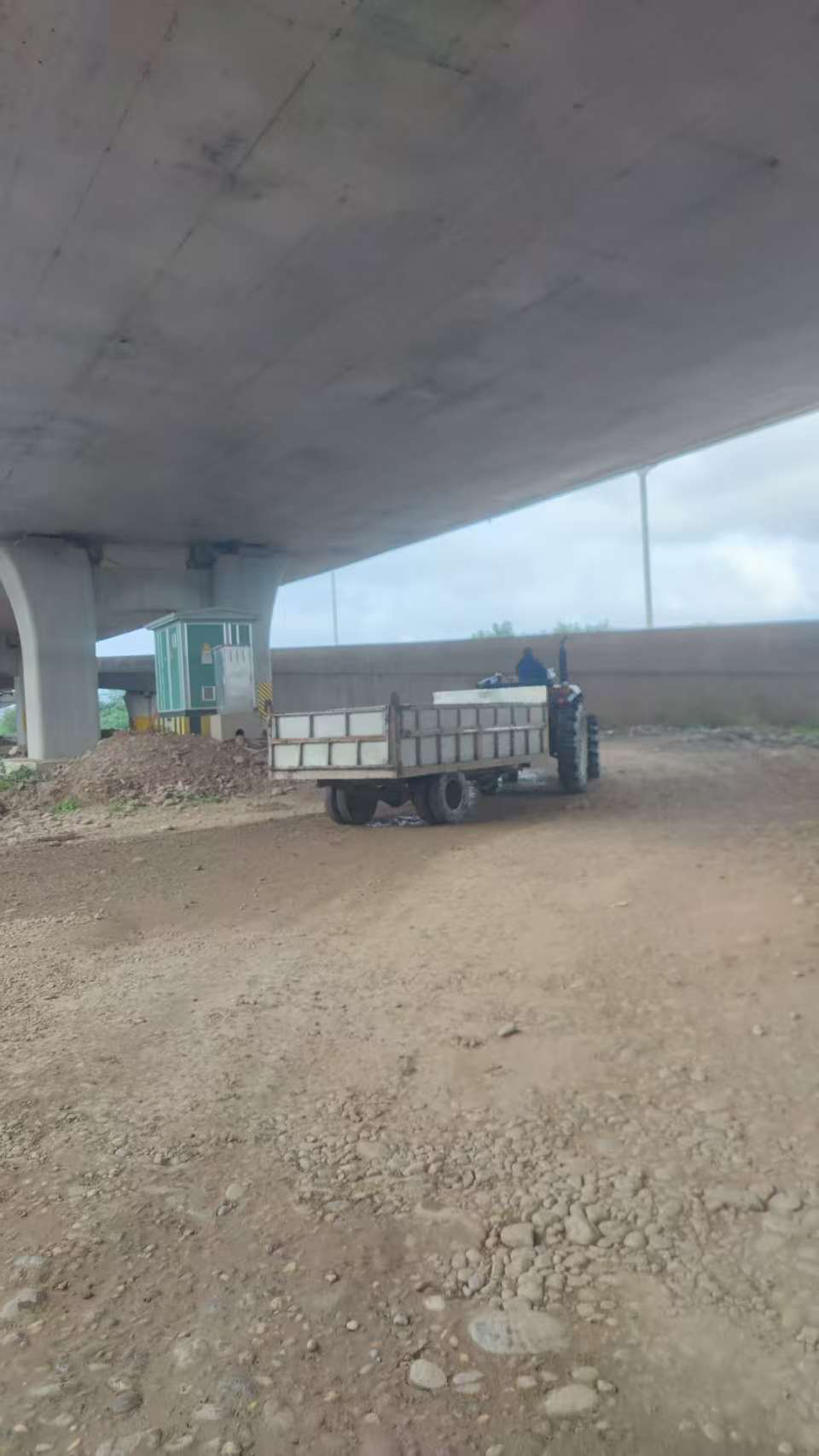 新桥镇小坝村凤台高架附近有农机未悬挂机动车号牌在凤台高架辅道行驶。