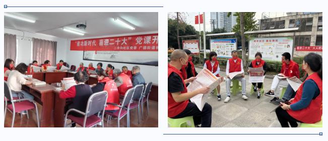 目前,广德街道各级党组织共计开展了学习交流会8场,百姓坝坝会3场,以“百姓化”语言,完整、准确、全面诠释好党的二十大新表述、新概括、新论断,做好党的二十大正面宣传和引导。图片