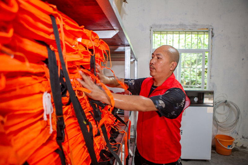 8月25日,记者在遂宁经开区圣鹭岛救生楼看到,工作人员正在检查防洪物资。目前,该救生楼各类救援设备经测试都能正常使用,雨靴、救生衣、矿泉水、方便面等应急物资,可保证岛上居民一周的生活。