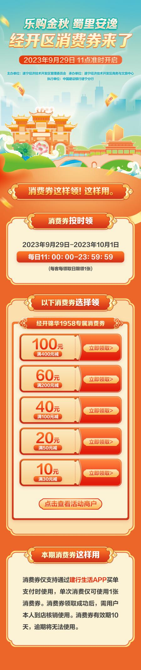 遂宁经开区将在中秋、国庆期间,继续发放“乐购金秋·蜀里安逸”政府消费券。