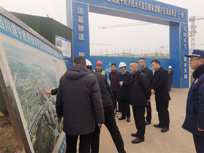1月23日,遂宁经开区党工委书记彭普诚带队深入一线开展春节前安全生产检查督导工作,并现场走访慰问了项目施工人员。