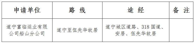 我局于2022年9月9日,受理遂宁富临运业有限公司船山分公司道路客运班线经营许可申请,根据交通运输部《道路运输管理工作规范》规定对该项申请进行许可前公示,公示期为2022年9月13日至2022年9月19日。公示期内,如有异议,均可向经开区行政审批局提出书面意见,以便我局进一步作出决定。