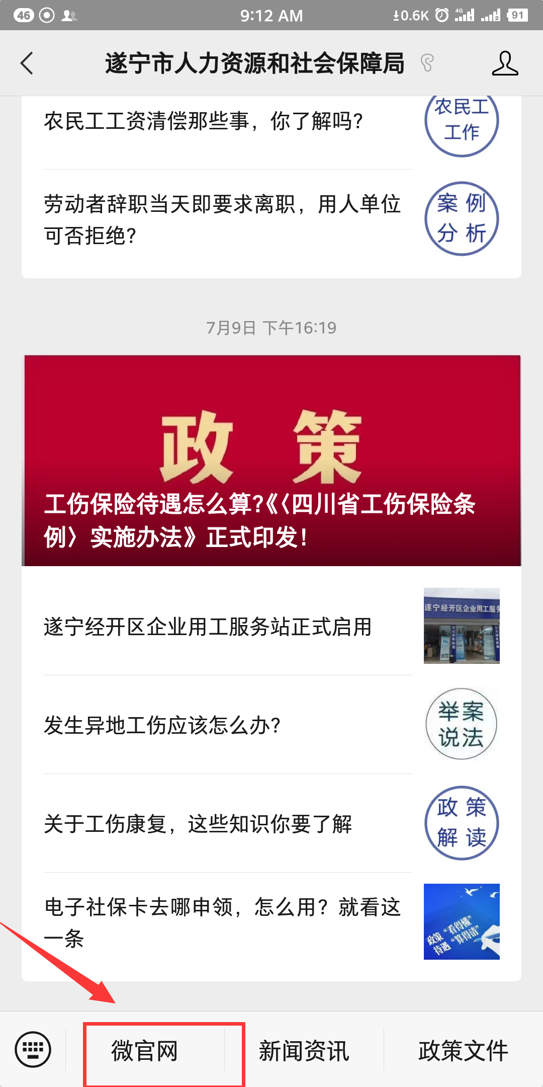 好消息!“遂宁市人力资源和社会保障局”微信服务号上可以在线缴纳社保费了。遂宁的参保群众可以足不出户手机缴纳城乡居民养老保险、城乡居民医疗保险、灵活就业养老保险、灵活就业医疗保险4种保险,具体步骤如下: