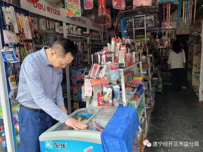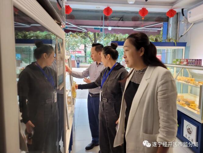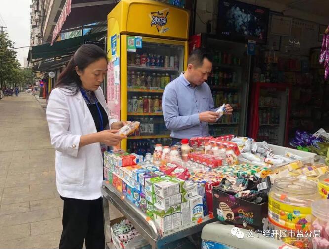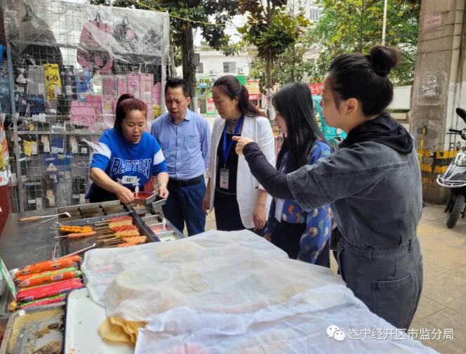 遂宁市市场监督管理局经开区分局高度重视食品安全工作,2021年5月7日,由局长何富强、副局长王秀兰带队,与北固市场监管所同志一道对北固实验小学周边进行食品安全检查。