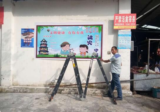 印制 “文明健康,有你有我”、 “诚信经营”等公益广告1000余份,对全区市场公益广告及时更新,制作 “共同抗疫情、间隔一米”标识标牌15个、更换川中大市场、九莲市场大门宣传围挡,工作人员积极开展文明宣讲、劝导,营造较好宣传氛围。