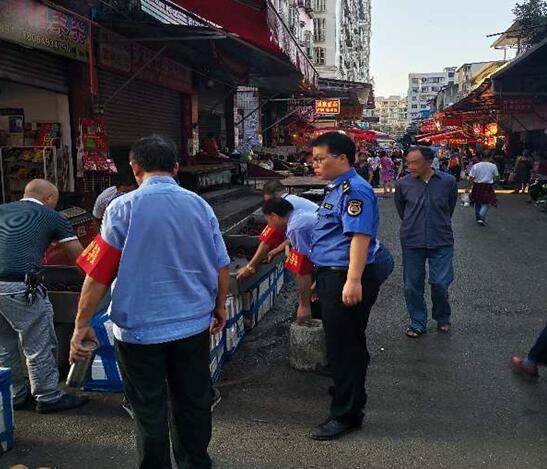 紧盯文明城市建设标准,排查梳理市场问题清单,按照“网中有格、格中有责,责任到人、监管到位”原则,局机关人员和市局下派人员全部派驻农贸市场,蹲点督导,任务层层分解至各所,各市场,市场各区域。对标对表,对活禽宰杀、车辆乱停乱发、牛皮癣小广告胡乱张贴等问题,严防死守,盯死看牢,严防反弹,确保工作实效。