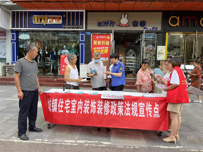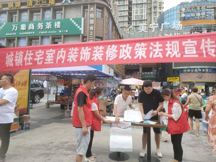 为规范城镇住宅室内装饰装修活动,保障装饰装修工程质量和房屋安全,维护装饰装修活动当事人合法权益,7月18日,遂宁经开区建交局联合区综合局、市场监管分局在辖区内开展城镇住宅室内装饰装修领域政策法规宣传活动。
