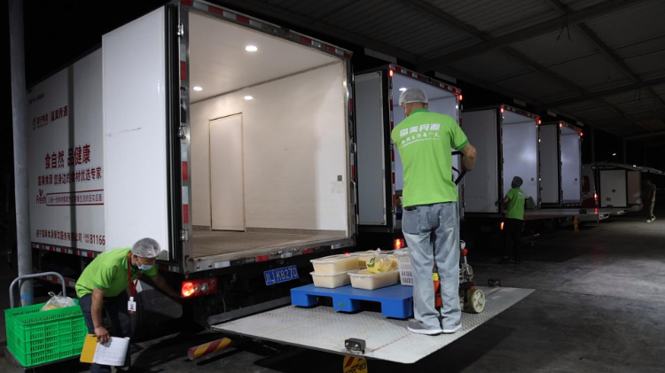 凌晨4点,遂宁富美食源餐饮服务有限公司配送中心已灯火通明。工作人员打开智能化配送系统,屏幕上显示着按商品分拣、按客户分拣、按路线分拣等多种方式。在这里,从订单核查、场地清洁到温度实时监测,每个环节都将经过精准称重、订单核实、食安检测……层层严格把关,待留存照片后,这批“初检合格”的食物将准备装车。