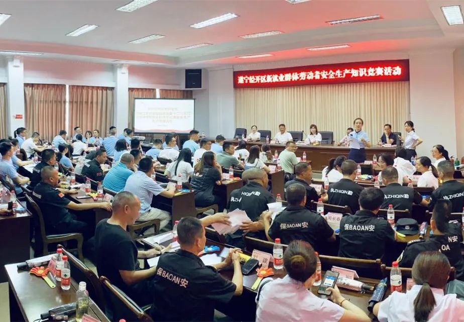为深入学习宣传贯彻省第十二党代会精神,全面落实好党代会“保安全”这个底线要求。日前,遂宁经开区总工会开展了新就业群体劳动者安全知识竞赛,来自辖区保安物业、快递小哥、货车司机等100余人参加活动。