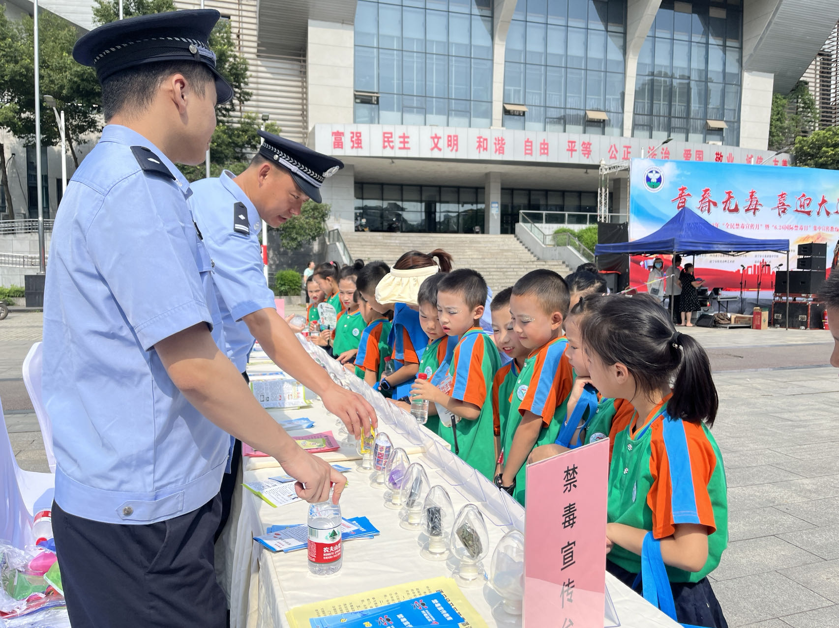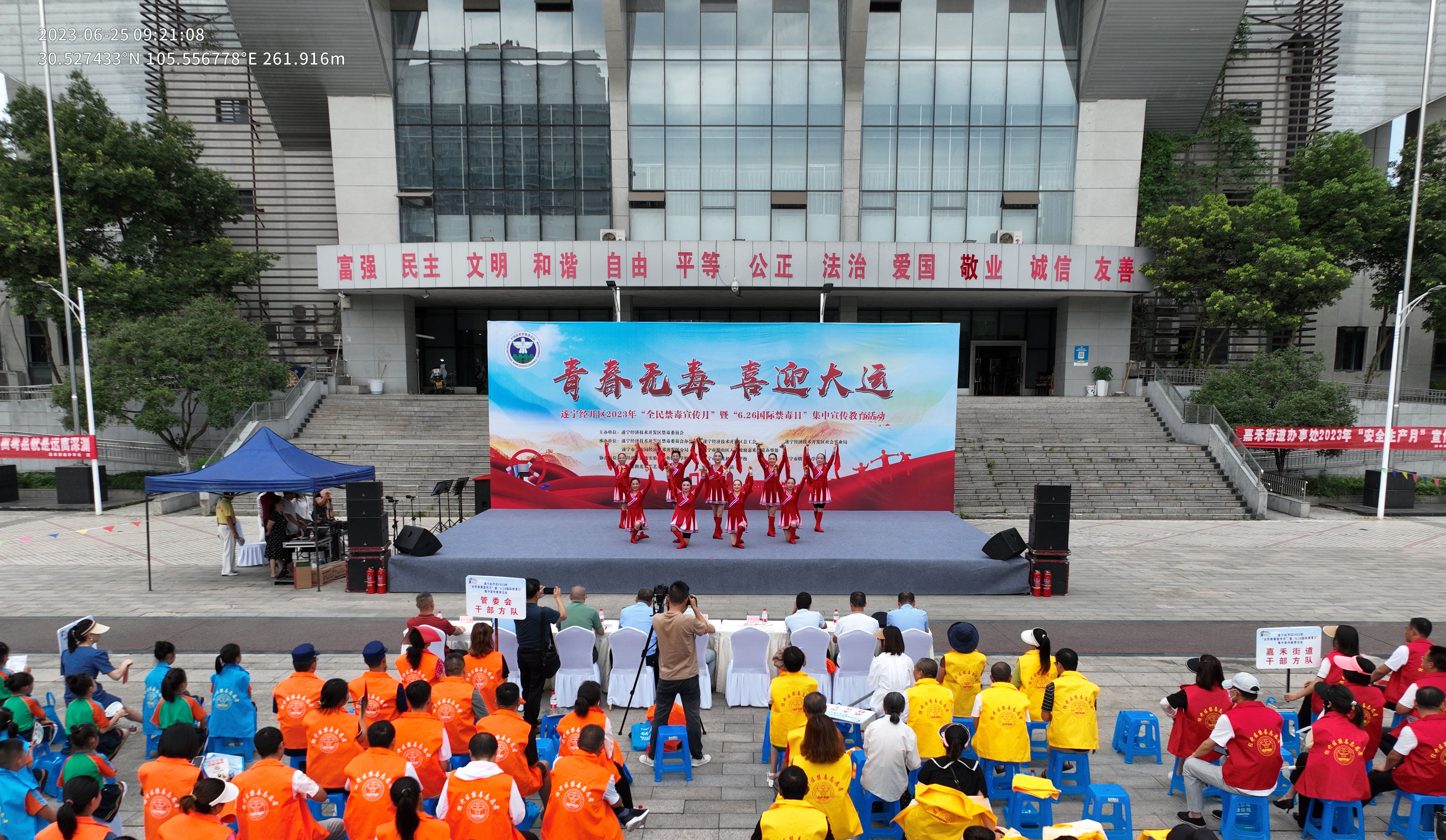 为全面落实全省、全市禁毒工作会议精神,大力营造全区毒品问题治理严打整治宣传氛围,助力成都大运会顺利召开,6月25日,遂宁经开区举行2023年“全民禁毒宣传月”暨“6.26国际禁毒日”集中宣传教育活动,通过主题文艺演出,配合政策法规宣传,参观毒品展示台和有奖知识问答等多种形式开展禁毒宣传。市主城区毒品联合治理办公室主任、遂宁市公安局二级高级警长刘洪恩,区管委会副主任、公安分局局长、禁毒委副主任王智斌参加活动。