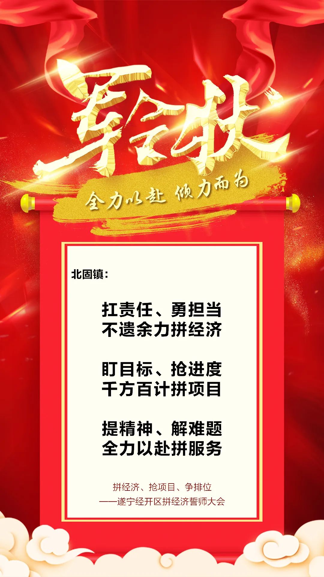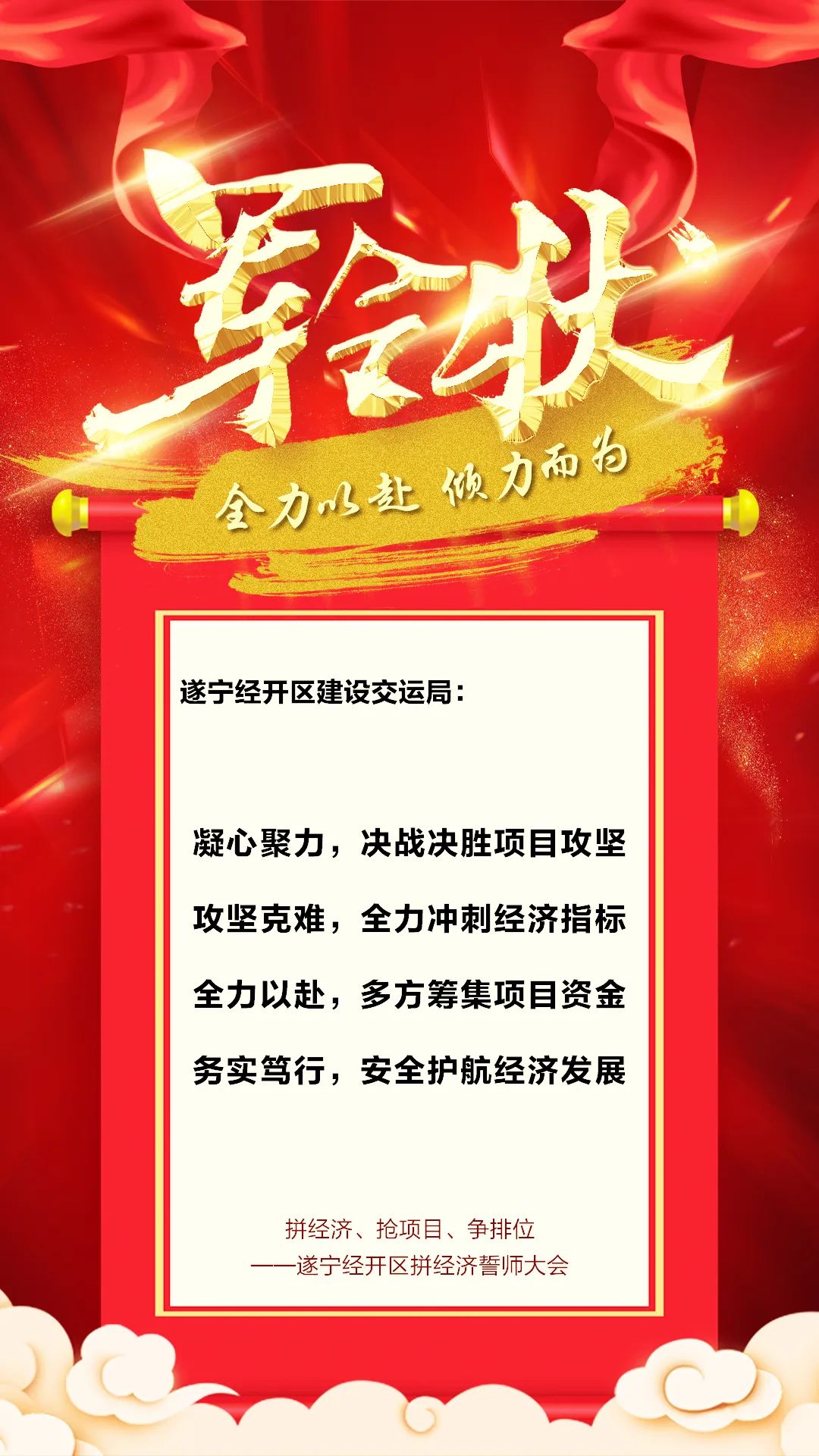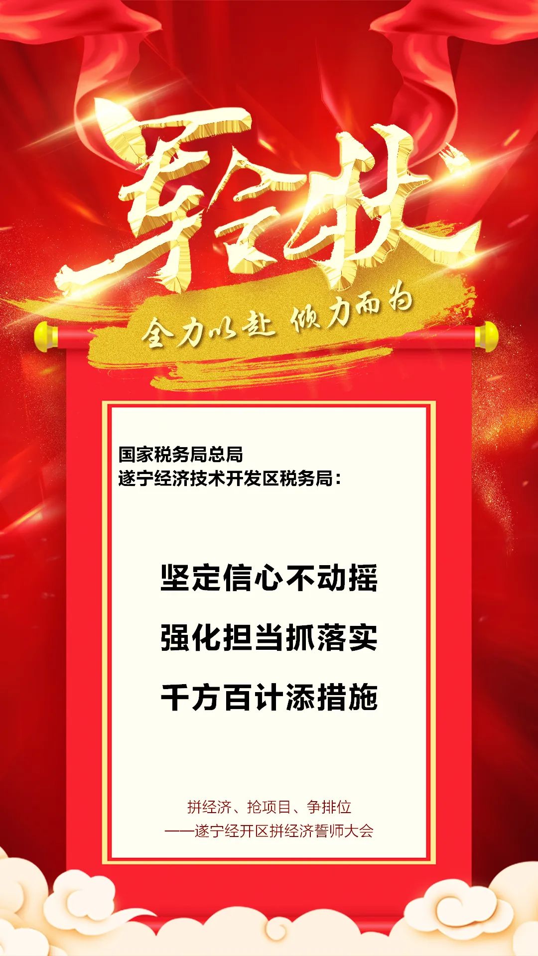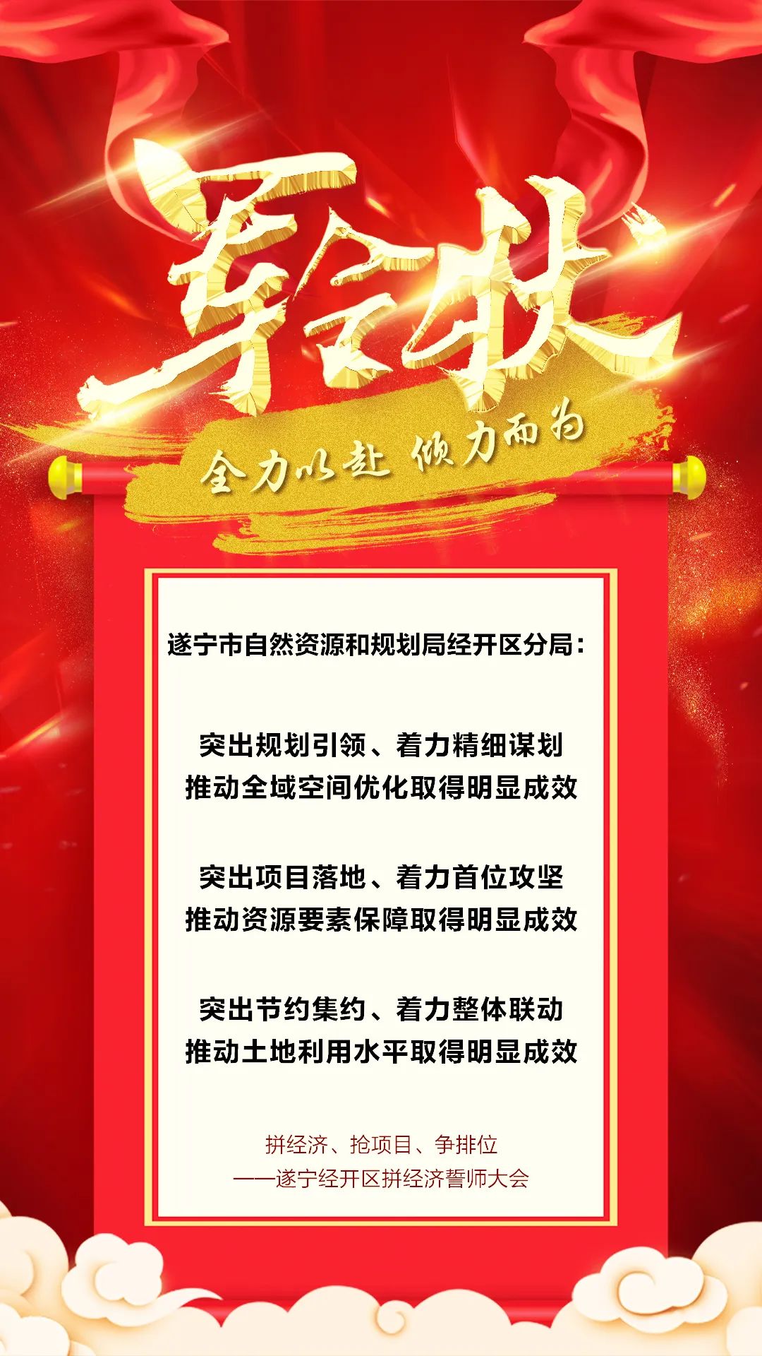 9月2日,遂宁经开区拼经济誓师大会上,相关部门就拼经济、搞建设作了表态发言。各部门表示,要进一步认清形势、统一思想、坚定信心,以冲锋冲刺的姿态和决战决胜的拼劲,抓实抓细拼经济、搞建设各项措施,坚决完成全年目标任务,以优异成绩迎接党的二十大胜利召开。