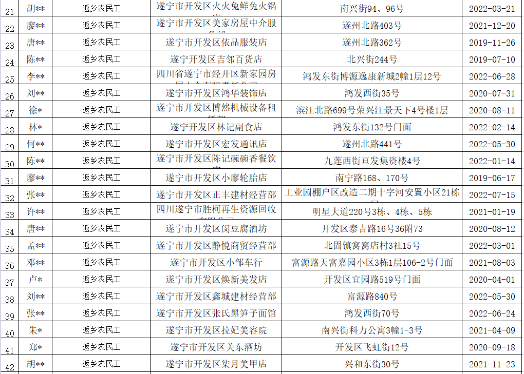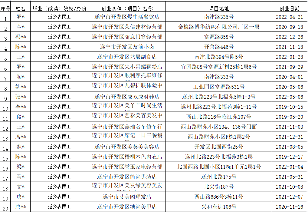 遂宁经济技术开发区2023年第一批创业补贴公示名单