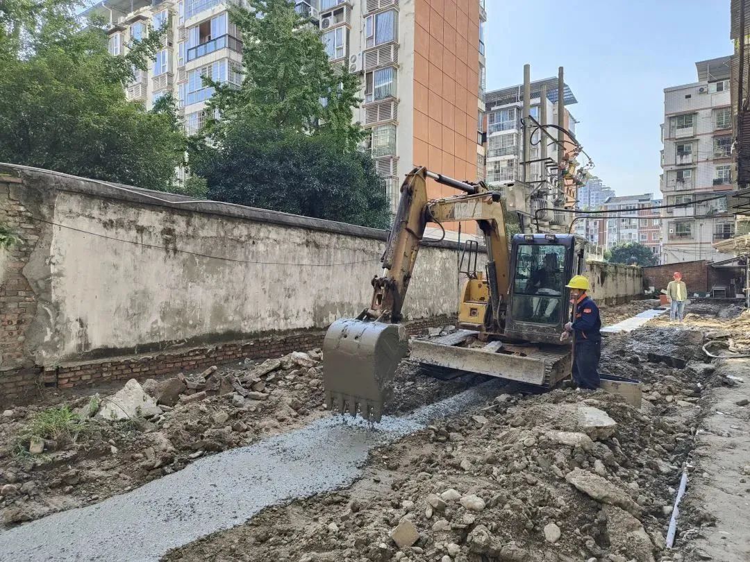 四川陆城邦茂建筑工程有限公司施工员代佳明详细介绍了施工进度,现在我们楼梯间的改造已经完成了70%—80%,接下来的工作重心主要是地面和沟槽开挖,雨污管网的埋设。目前雨污管道才开始进行几天建设,做了大概整体工程量的20%。