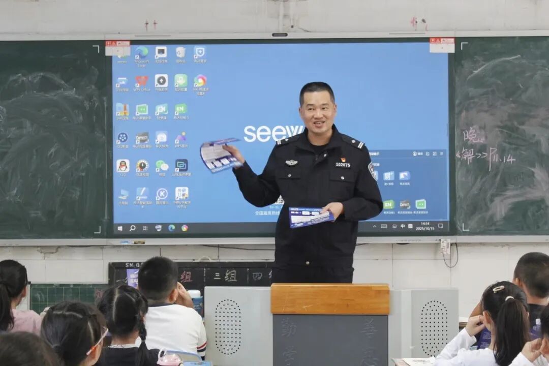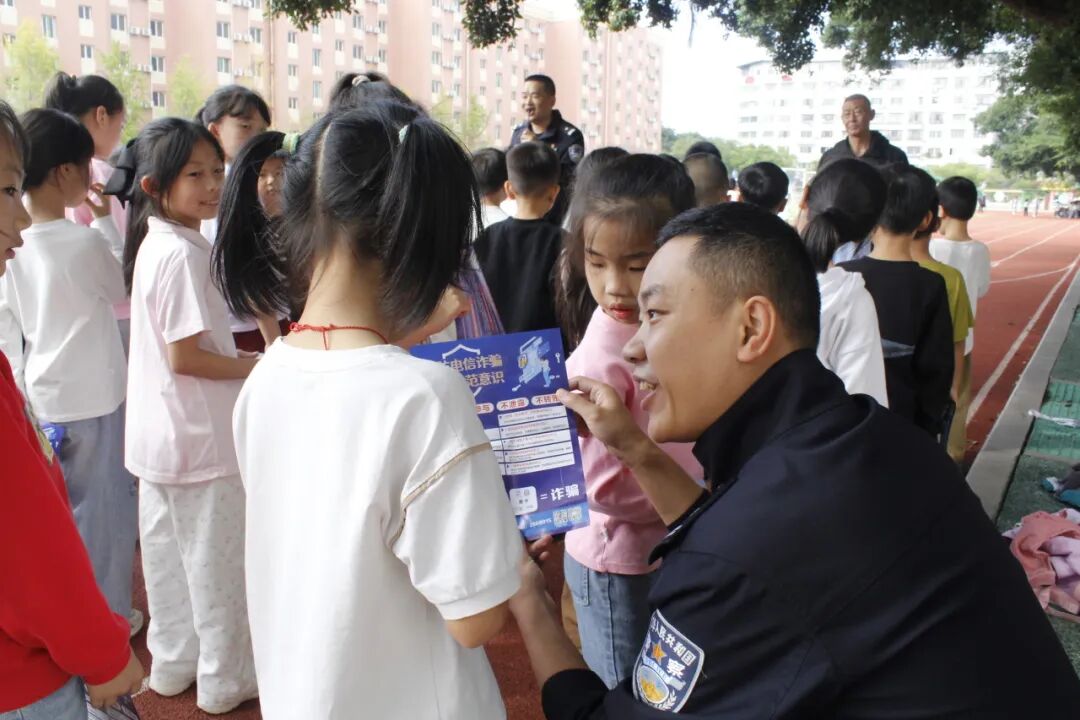在校园里,民警们化身 “反诈老师”,带着精心准备的宣传手册,走进教室、操场,向孩子们讲解如何跟父母共同学习反诈知识,完成反诈任务。鼓励孩子们当起家庭 “反诈小宣传员”,把反诈知识带回家,带动全家提高反诈警惕,形成“教育一个学生、影响一个家庭、守护一片辖区” 的良好反诈宣传氛围。