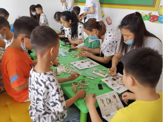 一群小朋友围坐在摆满了各种手工材料的桌前,大家津津有味地听着老师的讲解,跟着老师的指导一步步制作手工电风扇,“为什么我的电风扇不能转啊?”“哈哈,你还没有接电线啊!”紧接着一阵银铃般的笑声传来。四川汉唐优加教育科技的两位老师通过妙趣横生的手工课堂,在培养少年儿童的动手能力的同时,宣传科学知识,点燃科学兴趣,弘扬科学精神,让少年儿童在亲身感受科学技术知识带来快乐的同时,有效提高科学素质。