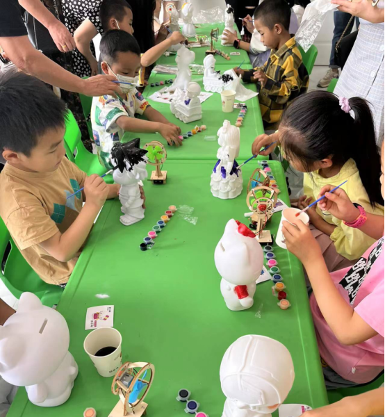 活动现场,志愿者们将涂色板和颜料都发放到每个小朋友的手中,小朋友在志愿者和父母的协助下,发挥天马行空的想象力,创造出一张张五彩斑斓的绘画,把一座座无精打采的白色雕塑变得容光焕发。不仅仅锻炼了儿童绘画水平,丰富了儿童的创作思维,更重要的是激发儿童乐于创作、勇于创意的乐趣,进一步提升儿童感受美、欣赏美、表现美、创造美的能力,有效的促进儿童兴趣爱好的发展。