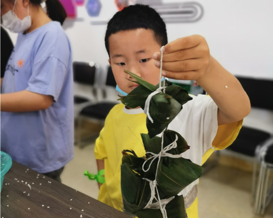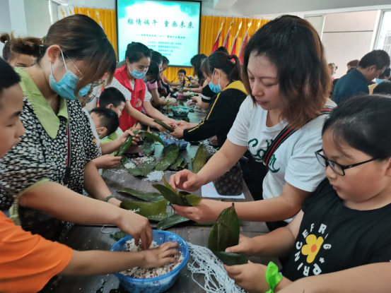 志愿者们早早地准备好了包粽子所需食材,与和辖区青少年、居民朋友围坐在一起,大家纷纷拿出看家本领,捋粽叶、填糯米、封口、扎捆,巧手翻飞。一张张翠绿的粽叶,一盆盆新鲜的糯米,一双双灵巧的手,瞬间变成了一个个有棱有角的粽子,活动室弥漫着粽叶香,大家不仅收获了劳动成果,还赢得了丰厚的奖品,大家说说笑笑,其乐融融,现场洋溢着浓浓的节日氛围,快乐而温馨。
