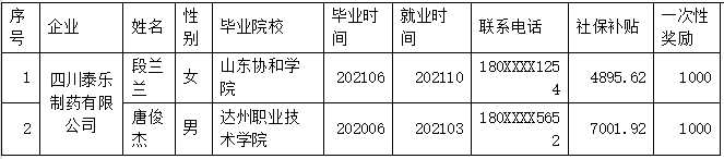 关于对四川泰乐制药有限公司吸纳高校毕业生就业相关补贴情况的公示