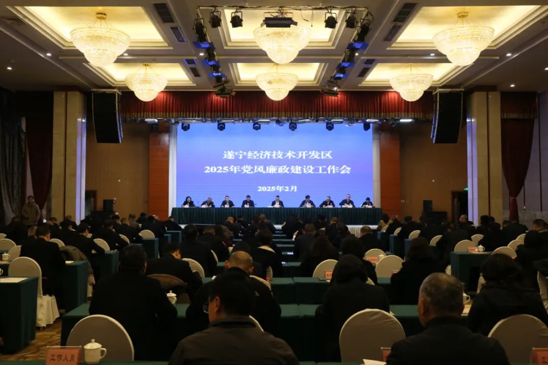 2月21日,遂宁经开区召开2025年党风廉政建设工作会议,区党工委书记彭普诚出席会议并讲话,党工委副书记、管委会主任熊杰主持会议,在家班子成员参加会议。