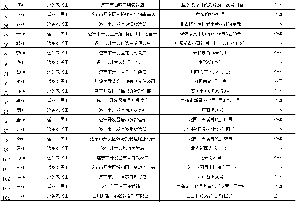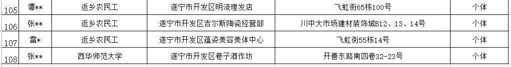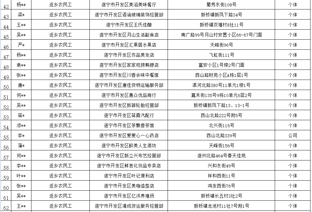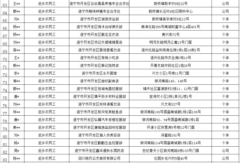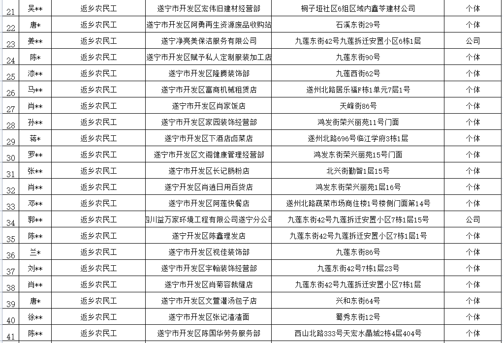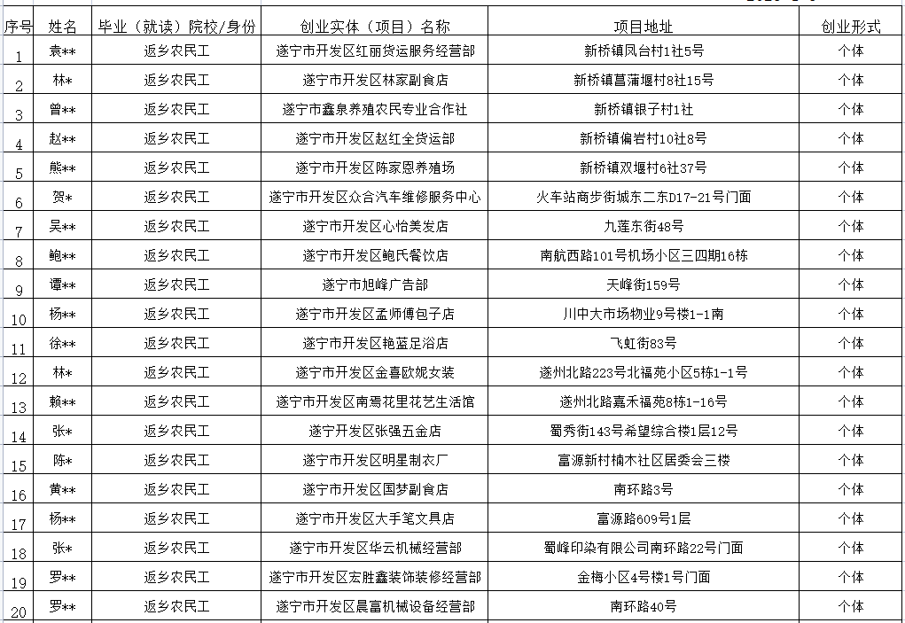遂宁经济技术开发区2022年4季度创业补贴公示名单