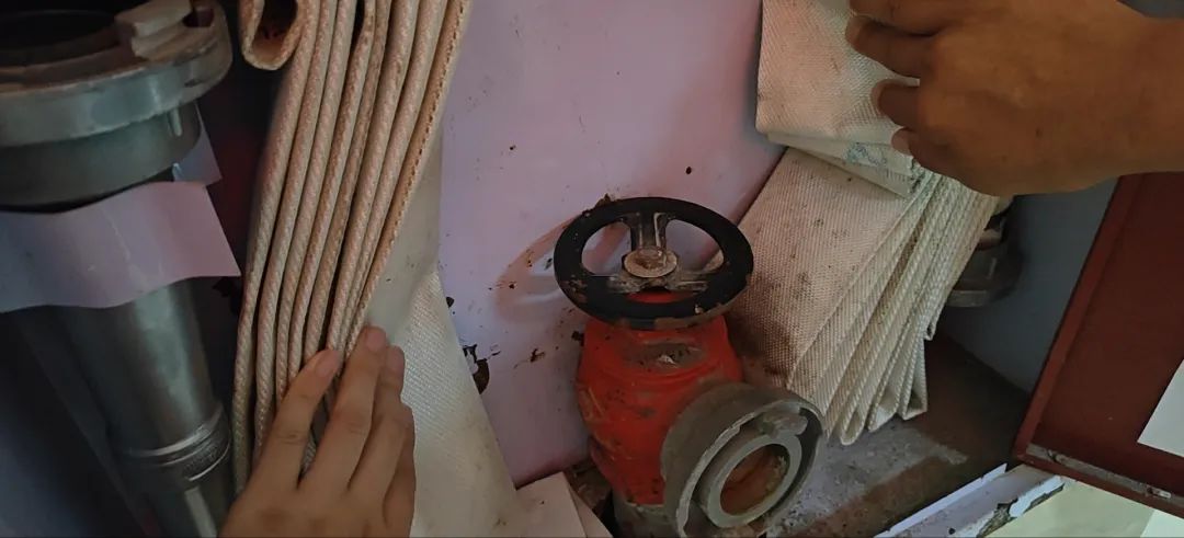 隐患案例一:一楼大厅消火栓开关与墙面卡住,无法开启供水。