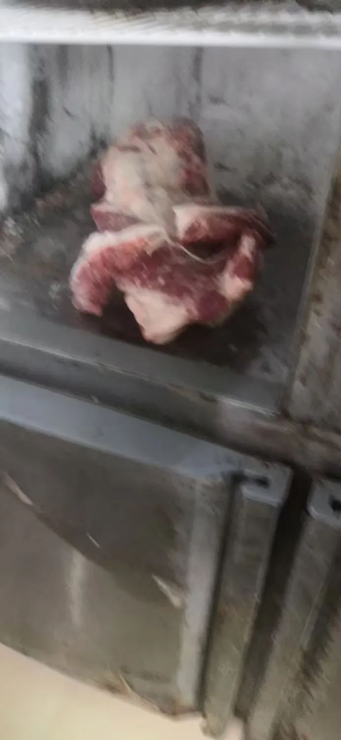 隐患案例二:食堂冰柜内鲜肉未套装保鲜袋进行分离贮存。