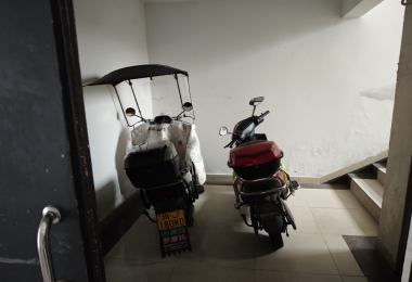 问题隐患:酒店消防通道内违规停放电瓶车,占用疏散通道。