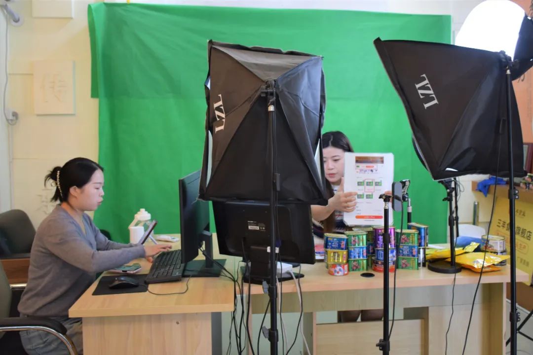 △19日上午9时许,遂宁市三丰食品有限公司工作人员正在进行产品直播。