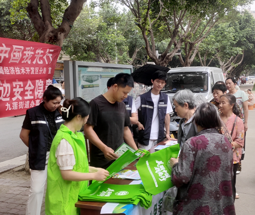 精心组织,举办主题宣传活动。6月5日,与九莲街道办协作,在九莲社区围绕“美丽中国我先行”主题,设置宣传咨询台、悬挂宣传标语,向过往群众宣传生态环境保护法律法规,讲解水、土壤、大气等环保知识,传播生态文明理念,提高群众参与度。现场共发放宣传资料600余册,环保购物袋、围裙、笔、笔记本等环保宣传礼品400余份,接受群众咨询100余人次。
