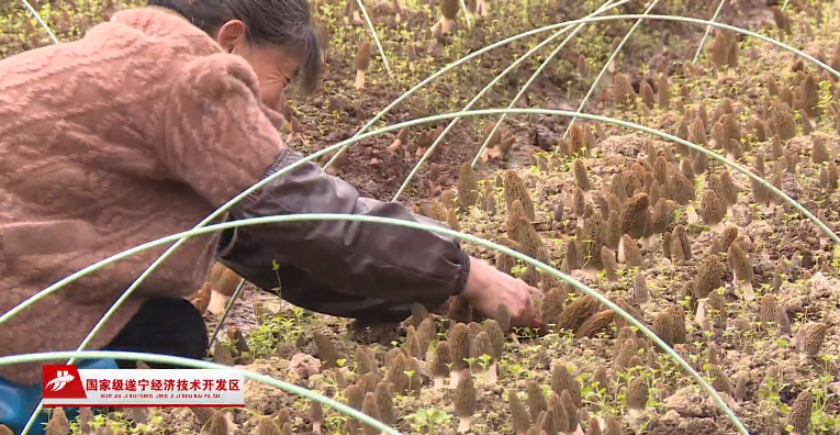 近日,记者来到遂宁经开区新桥镇银子村7组,道路旁一片黑色的塑料大棚格外醒目,大棚里种植的羊肚菌长势喜人,基地务工村民在技术人员的指导下忙碌采收。据了解,羊肚菌基地每周采摘2~3天,每个采摘日大约能收获1.8吨羊肚菌。