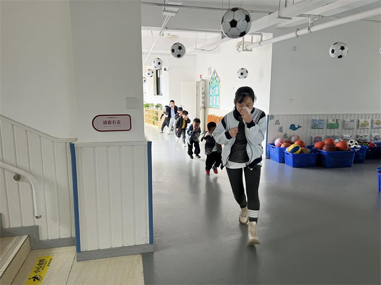 随着广播响起急促的消防警报声,老师迅速到达指定岗位,同学们捂住口鼻,弯腰沿着安全疏散路线快速、有序地撤离到操场。随后,各班清点人数,逐级上报,整个逃生演练过程有序、高效。演练结束后,学校负责人对消防疏散演练活动进行总结,并对灭火器的正确使用方法进行培训。