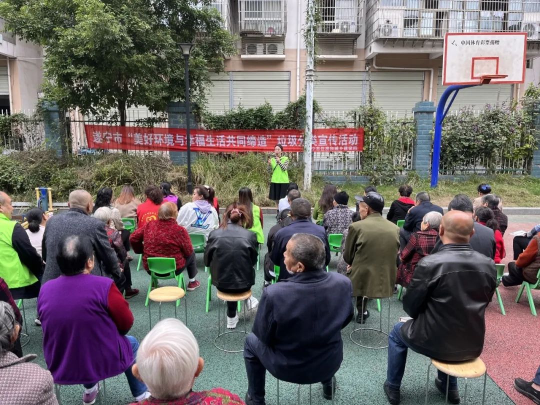 为进一步提高居民对生活垃圾分类知识的知晓率、普及率,引导居民正确投放各类生活垃圾,11月1日上午,遂宁经开区市政中心联合市住建局在嘉禾街道龙桥社区开展以“美好环境与幸福生活共同缔造”为主题的生活垃圾分类宣传活动。