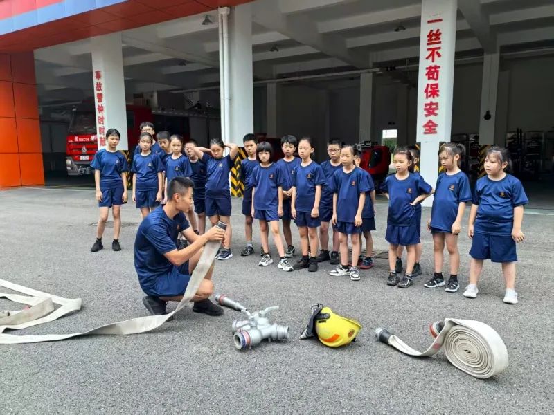 夏令营期间,消防员带领孩子们走进消防站,通过参观车辆装备、防护器材、荣誉室等场所,揭秘“火焰蓝”的日常。整齐的内务设置与先进的救援设备令孩子们惊叹不已,而消防员的专业讲解则让抽象的安全知识变得直观可感。此外,遂宁经开区消防救援大队严格遵循活动日程,确保课程内容扎实落地,让每位营员在互动中收获成长。