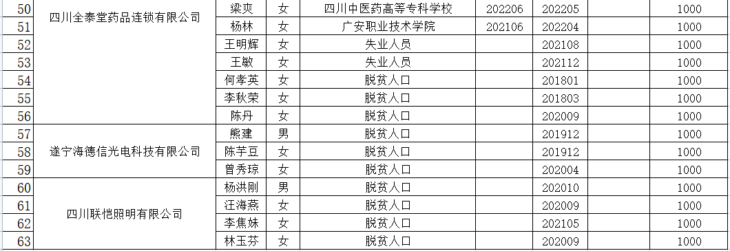 附件:遂宁经开区企业吸纳重点群体就业花名册