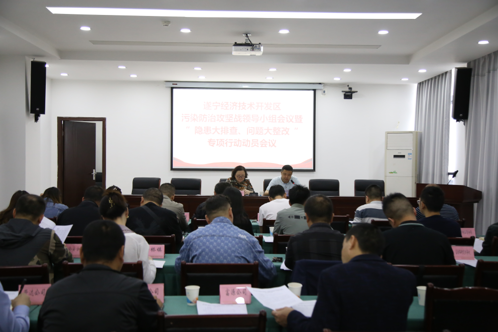 4月28日,遂宁经开区污染防治攻坚战领导小组会议暨“隐患大排查、问题大整改”专项行动动员会议召开,区党工委委员、管委会副主任任常菊出席会议。