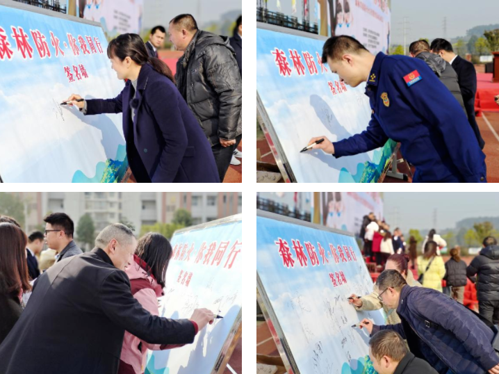 现场,参会嘉宾和广德中学的全校师生还进行了“森林防火·你我同行”千人现场签名活动。