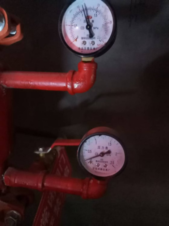 安全隐患1:3栋设置的两组湿式报警阀组其中一组供水侧压力表显示压力为0MPa且两组阀组报警管路均关闭、管路阀门启闭状态标识错误;