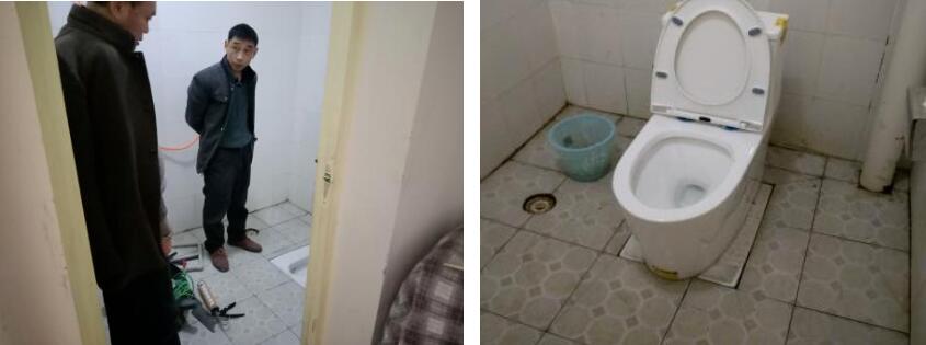 适老化改造前,与老年人家属协商(左),改造完成后(右)