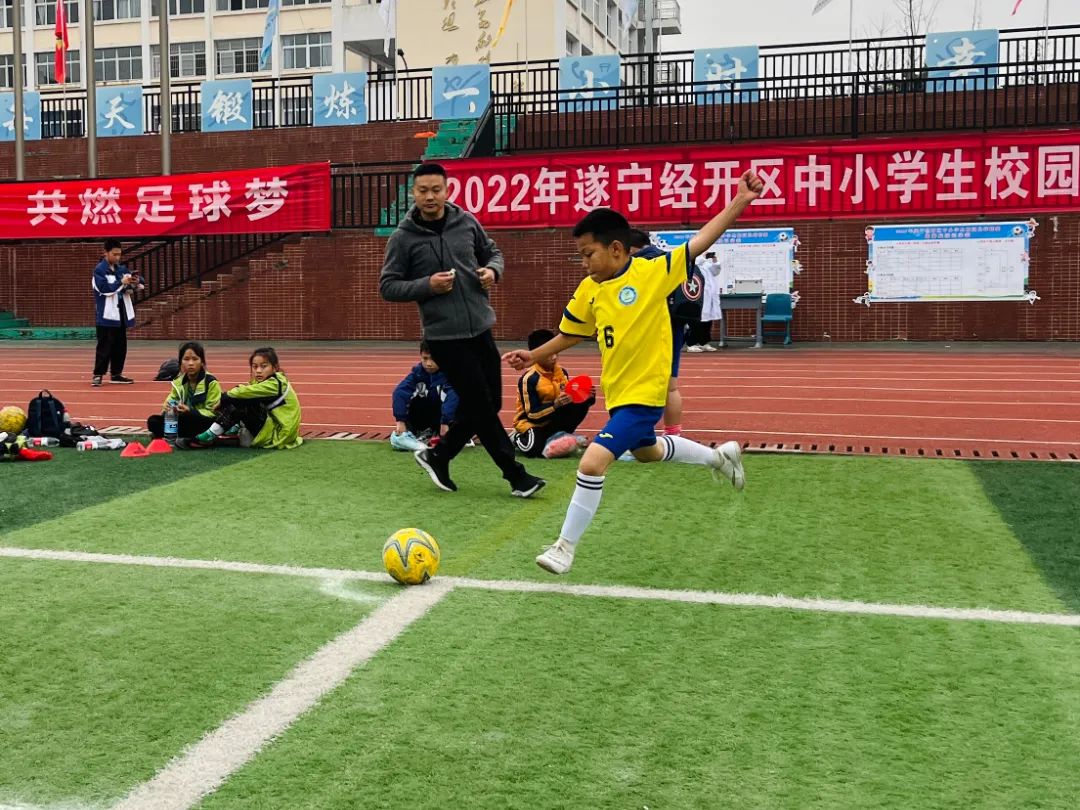 为加快推进我区体育蓬勃发展,提高学生体育运动竞技水平,11月18-20日,由经开区社事局主办,遂宁七中、广德中学承办的“2022年遂宁经开区中小学生校园足球联赛”正式开赛,全区30支代表队400余名运动员在落实疫情防控措施前提下,分批次、分场地参加了本轮比赛。