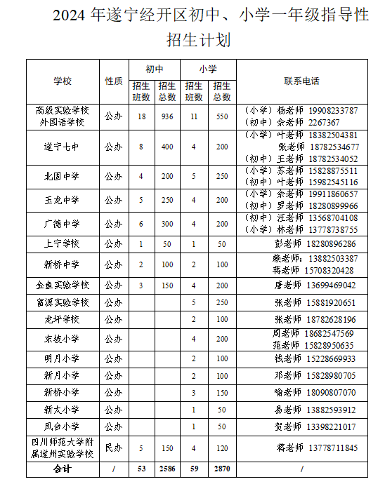 根据《教育部办公厅关于开展义务教育阳光招生专项行动(2024)的通知》(教基厅函〔2024〕11号)和《遂宁市教育和体育局关于做好 2024 年义务教育招生入学工作的通知》(遂教体函〔2024〕38号)精神,为规范招生入学秩序,做好全区招生工作,现就2024年经开区义务教育阶段招生入学有关工作通知如下。