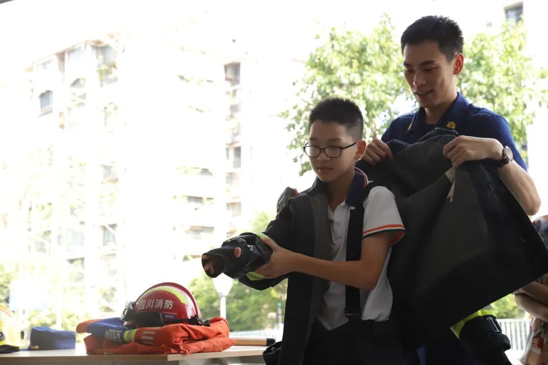 宣传员还利用消防救援服装为宣传载体,带领学生们了解各类消防救援服装,组织学生们体验、感受,学生们积极主动参与其中,学习热情十分高涨,宣传培训活动达到了预期效果。