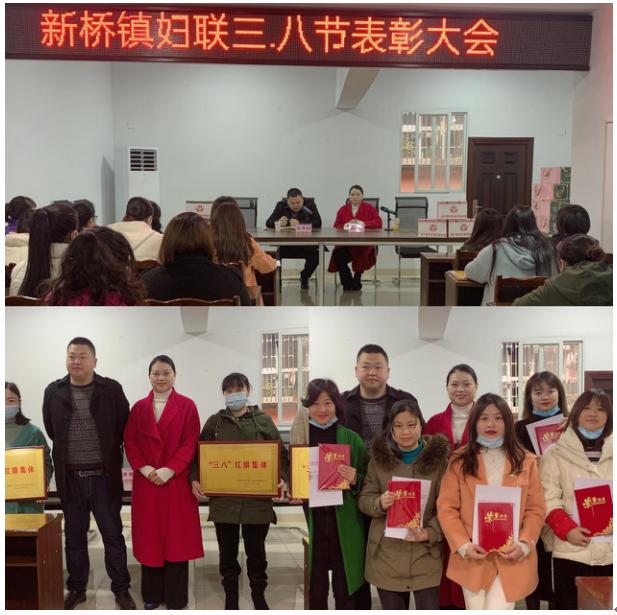 3月4日上午新桥镇妇联在镇三楼会议室举办了庆“三.八”妇女节表彰活动,共表彰4个“三八红旗集体”、1名“三八红旗手”、10名“巾帼建功标兵”、2名“先进妇女工作者”。
