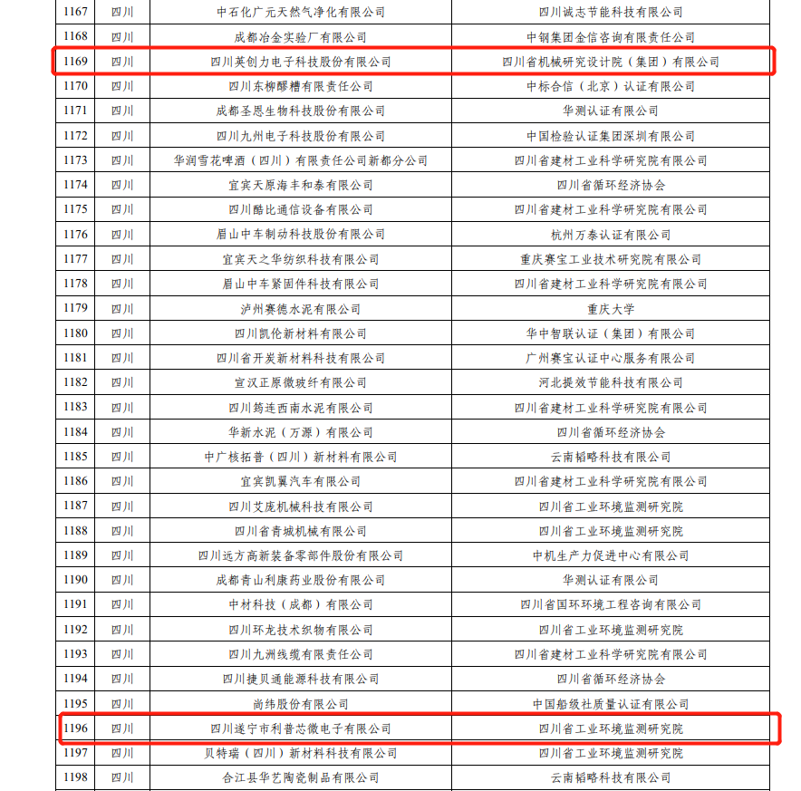2023年度绿色制造名单中,遂宁经开区2家企业:四川英创力电子科技股份有限公司、四川遂宁市利普芯微电子有限公司入选绿色工厂名单(部分)。