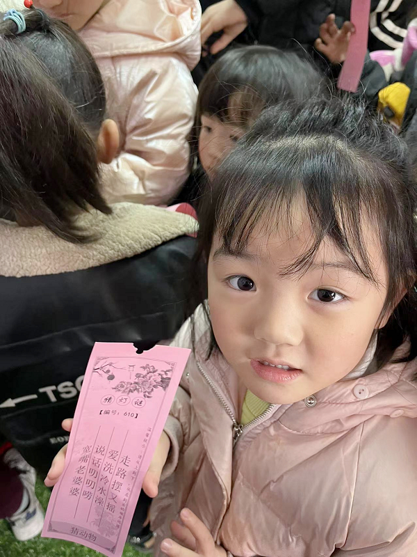 到了猜灯谜的环节,妙趣横生的灯谜,还有精致的小礼品,吸引着大家的目光;谜语种类繁多,涵盖了成语、人名、动物等等,许多家长带着孩子积极参与,争先恐后抢猜灯谜,场面十分热闹,现场传出阵阵欢声笑语。通过寓教于乐的形式,既丰富了孩子们的精神世界,也让孩子们感受到了传统文化的魅力。