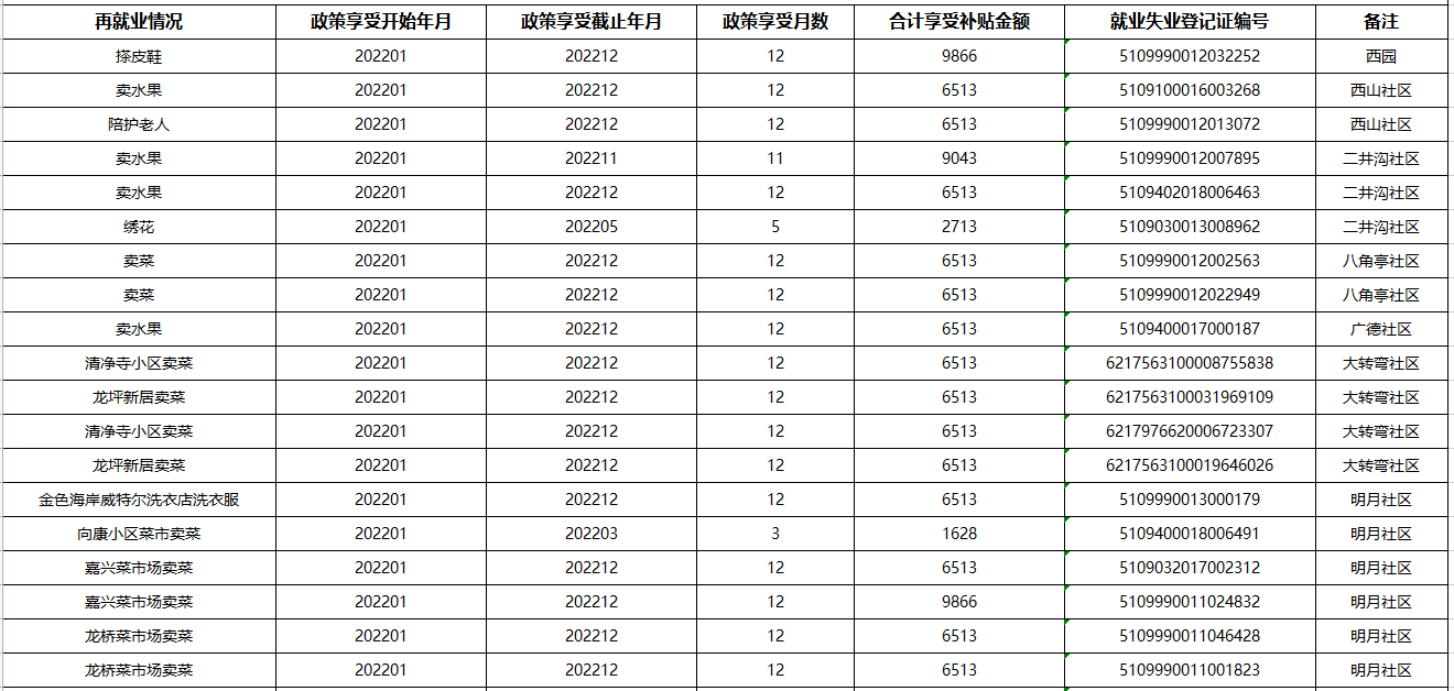 根据遂宁市人力资源和社会保障局《关于印发<遂宁市就业困难人员灵活就业社会保险补贴申领管理暂行办法>的通知》规定,现将领取灵活就业社保补贴人员的情况予以公示,公示期7天,如有其申请情况与事实不符的,可直接到社区或街道办事处反映。